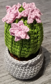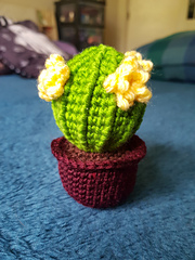 Do you like to have plants around but do not have enough time for them? Do you want to have a cactus in your office but you are worried of pricking your fingers with it? This cute barrel cactus (Echinocactus grusonii) is the solution. Fast and easy to crochet, this cactus will bring joy to your home or office, especially if you combine it with my bunny-ear cactus amigurumi pattern!