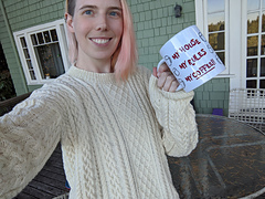 This pattern is simply a replica of a sweater from the Knives Out movie, reverse engineered for funsies in 10 sizes with 2 sleeve width options. It is a drop shoulder pullover, knit in pieces and seamed.