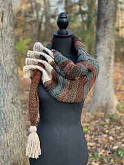 This unique scarf design is guaranteed to turn heads! It's a very simple construction with a stunning outcome. Trendy and warm this scarf can be worn in a few different ways.