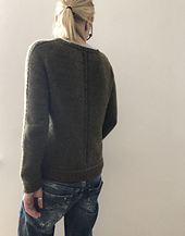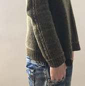 *forager* is worked seamlessly from the top down. The yoke is shaped by using a modified version of the contiguous set-in sleeves method developed by Susie Myers. First the yoke is worked back and forth to the final neck CO. When the neck shaping is complete, the yoke is worked in rounds to sleeve separation. The sleeve stitches are placed on hold and the underarm stitches are cast on. Then the body is worked in rounds to the twisted braid and ribbing. The sleeve stitches are then picked up again to work the sleeve in rounds, top down, to the cuffs. Neck finishing is worked last.