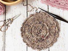 Measures 6 1/4” across after round 9. 16 hdc in 4”