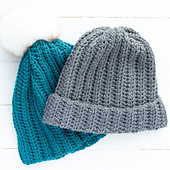 Practice your half-double crochet stitches with this super easy ribbed hat! It features a tapered top that reduces bunching, making it perfect with or without a pom. This hat is perfect for beginners and is worked in half double crochets and slip stitches. The pattern features 10 different sizes from preemie to adult large and includes instructions for how to make it slouchy or brimless.