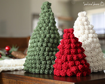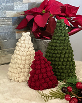 These are worked up with RedHeartYarn Supersaver and the decorated versions are paired with a 50 light pack (battery operated) set that I picked up at JoAnn (I think I live there these days and they’re on mega sale right now!).