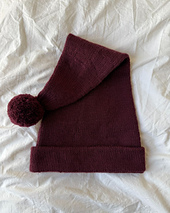 The burgundy Oslo Hat – Christmas Edition is knitted in Double Sunday by Sandnes Garn in the color Dyp burgunder \[4372\].