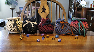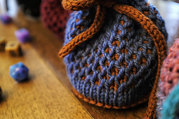 Get creative while knitting The Dice Bag of Minimal Magic to come up with minimal magical bonuses for you and your Dungeons and Dragons party.