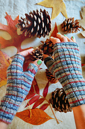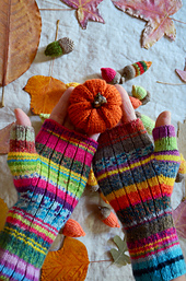**Everything November Mitts** are a very quick knit. The squishy rib pattern keeps the mitts nice and snug on your hands keeping warm air inside while leaving your fingers free for your daily tasks. Seven sizes in the pattern allow you to knit these fingerless mitts for your family and friends, and their kids and spouses too!