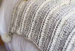 With it’s knit look and braid like stitches, this cuddler blanket is both timeless and right on trend. Using a large hook and super bulky yarn, you’ll be cozy both making and using your squishy new blanket. One day is all you’ll need to whip it up, and it’s easy enough for beginners!