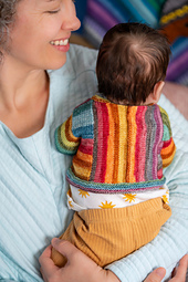 The Showered in Rainbows baby sweater was specifically designed to work magic with your self-striping yarn. This ONE SKEIN project is perfect for creating a gift-worthy garment with a single, special skein in your stash. Plus, the unusual construction creates shorter rows. Fewer stitches per row means those stripes really shine (especially if your yarn has narrow stripes).