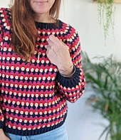 The Granny Go Round Jumper is top down, seamless and fun! Worked in the classic granny stitch and available in 8 sizes -with easily customisable sleeve and body length. It is available to download in both UK and US crochet terms.