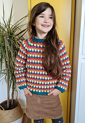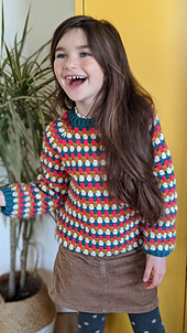 The Kids Granny Go Round Jumper is top down, seamless and fun! Worked in the classic granny stitch and available in 5 sizes -with easily customisable sleeve and body length. This is the Kids version of the best selling adults Granny Go Round Jumper.