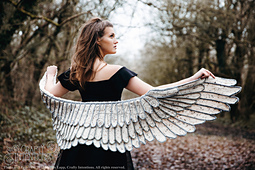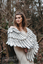 The winged shawl in the photos was made by Jessika Sigala Turner ,