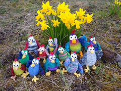 When you use sock yarn the chicken is ca. 11 cm high from comb to toe. Sitting it's ca. 8/9 cm.