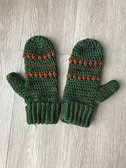This pattern is simple and fast to crochet with half double crochet and single crochet stitches. The double ribbed cuff gives an extra coziness and keep the mittens fitted to your hand and hold well.