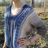Plik zawiera schemat graficzny. Sweter jest przerabiany pionowo w kierunku rękawów. Następnie zszywa się boki i dorabia rękawy. W okrążeniach, bez szycia.