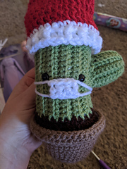 April 12, 2021: This is a scrap yarn project that I used a number of different unlabeled Worsted Weight yarns for so I unfortunately can't tell you exact colors. This is a little character that's meant to sit on a desk or shelf with different hats/accessories you can switch out with the seasons and holidays.