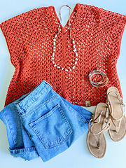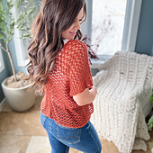 The Rusty Road Crop Top is worked in two rectangular pieces with a simple lace stitch. The top is completed by seaming the rectangles together, leaving a neck opening. The stitch pattern creates a beautiful open pattern that is light and airy for Spring and Summer. Length is easily adjustable to shorten or lengthen. This soft and lightweight design is made in Knit Picks/WeCrochet fingering weight Stroll.
