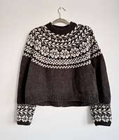 The yoke is knitted in stranded colorwork with increases incorporated into the pattern. Choose 2 colors with enough contrast for the best result.