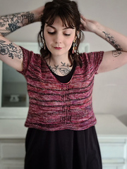 Made to suit any type of yarn colour or texture, it's a crop knit to wear over dresses or high waisted pants. It can easily be lenghtened and shaped to fit any personal style preference and will be a quick project to use up treasured skeins.