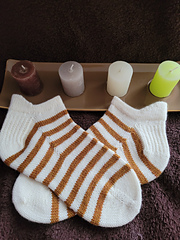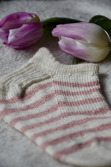 Ce patron de chaussettes basses idéales pour des basquettes est disponible **en kit** chez Madelaine et Filibert.