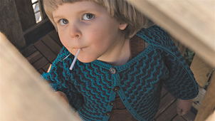 The same goes for a bigger toddler size, if you work the largest size here (2-3 years old) with Aran weight yarn and a 5 mm hook you should get a cardigan that would fit for a 4 year old.