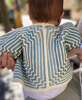 This pattern really is very simple, so it‘s easy enough for a seasoned crocheter to make different sizes with this pattern, even adult sizes! You just make larger hexagons and also add more rounds to the sleeve extensions. This will be a bit fiddly in the original version, since there you have to think of the continuance of the mosaic pattern too. But in the simple version this should be fairly easy!