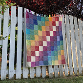 The pattern sample is knitted using mini skeins and leftovers of fingering weight yarn, but you can use any weight of yarn you like as long as you remain consistent through the whole blanket.