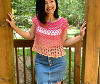 This crochet summer lace top is made in one piece in the round from the top down. That means no sewing!