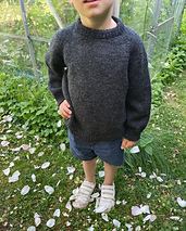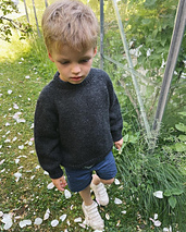 The dark grey Hanstholm Sweater Junior is knitted in Peer Gynt by Sandnes Garn in the color Koksmelert \[1088\].