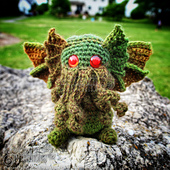 Developed by Megan Lapp aka Crafty Intentions, this pattern is for Five Cute Creepy critters! A Cthulhu, a Jersey Devil, a Krampus, a Mothman and a Malevolent Ravenous Skeletal Forest Guardian!! This pattern is written in U.S. terminology.