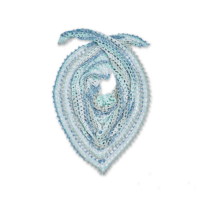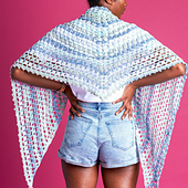 This openwork crochet shawl is ideal for summer or when you need a light layer of warmth. Ultra comfortable in our Caron Cotton Ripple Cakes, a light ripple texture is incorporated with granny crochet stitches, and framed with picot edging. Featuring chain, double crochet and treble crochet stitches, you'll work from the center and increase stitches to form a triangular shaped shawl. No sizing makes this option a stylish, no-fuss gift idea!