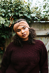 Broceliande est un bandeau simple avec un point texturé gauffré. Tricoté à plat jusqu'à la taille voulue, il est cousu à la fin pour former le nœud.