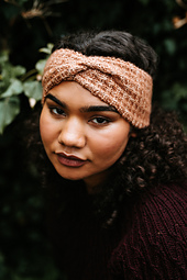 Broceliande is a simple headband with a waffle rib pattern. Knitted flat until desired size, it is seamed together at the end to form the knot.