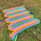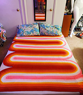 “Ribbon Canyon” is inspired by 1970s interior design and the undulating curve of a river, carving solid stone into sweeping canyons over the millennia. It looks complicated, but it’s simply a matter of taking time to understand how the pattern works and being meticulous during your setup. The whole design is built from a simple foundation. Once that’s completed, this project is a relaxing double crochet daydream.