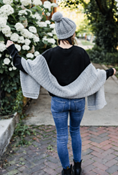 -6 skeins Lion Wool-Ease in the color Grey Heather. Substitute 1075 yards of category 4 worsted weight yarn.