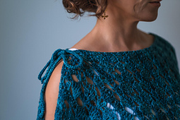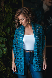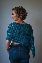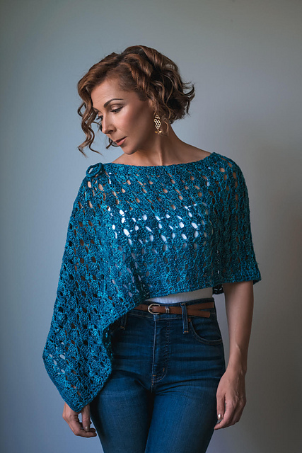 This project utilizes a simple technique that may be used to produce a wide variety of effects. By using 3 different yarns and crocheting just one row with each, the correct yarn is always where it needs to be to work the next row. The yarns may be different colors and different weights. In this design, we chose 3 different yarns that are all in the same color. With the addition of a few crocheted i-cords and/or well placed seams, this may be worn as a scarf, shawl, cowl, 2 styles of poncho, head scarf, and shrug. The stitch pattern is very easy to work and produces a soft, stretchy fabric.