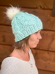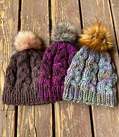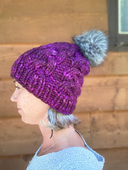 This hat knits up really beautifully! It has amazingly squishy braids, but they lay nicely and are not too bulky on the head, and it can be adorned with or without a pom-pom!