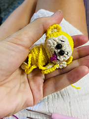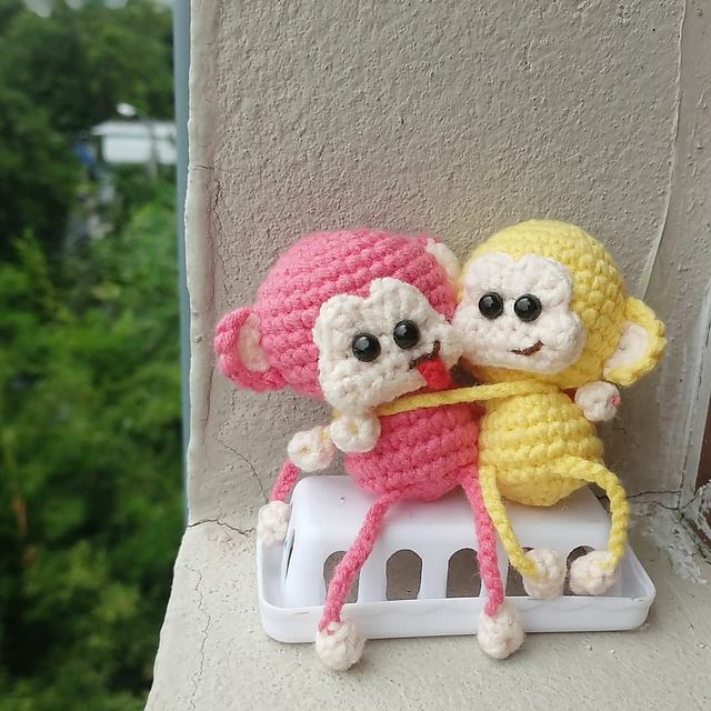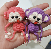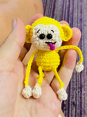Little monkey amigurumi which is just 2.25" tall (without legs) if using fingering weight yarn and 2 mm hook.
