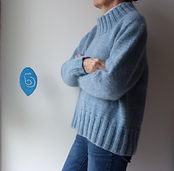 The sweater is worked top down in stockinette stitch. It has a kind of saddle shoulder, that’s placed on the back, rather than on the shoulder, making it almost invisible from the front. Stitches for the sleeves are put aside on the way down, and the body is finished with a wide ribbed edge. The sleeves are knitted one at a time, also finished with a wide rib. Finally, the neckline is made from a wide rib as well. There are six sizes, choose the one that fits best to bust size. The sweater has a positive ease of approx. 15-17 cm, i.e. it is loose-fitting.
