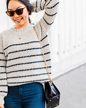 The Breton Stripe Sweater combines a simple round, loose balloon sleeves, oversized fit and stripe details to create an effortlessly chic and comfy sweater! The length of the sweater and stripes can all be altered to fit any style or colour palette. For a more minimalist look, you can crochet solid coloured sweater or colour block for a statement look!