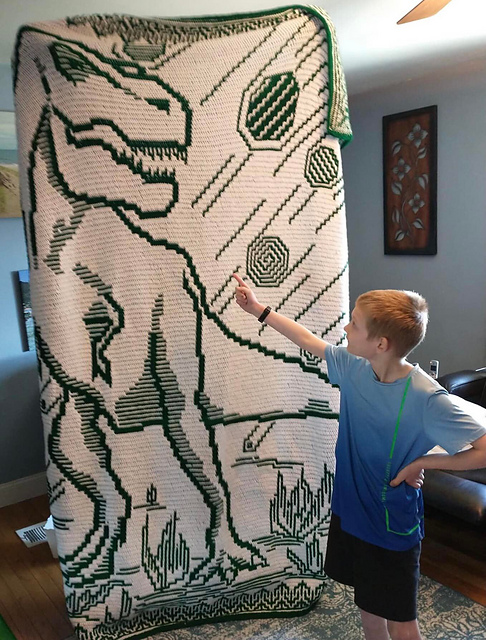 Using a 3 mm hook the blanket measures approximately 90 by 150 cm. The size depends greatly on hook size, tension and yarn used