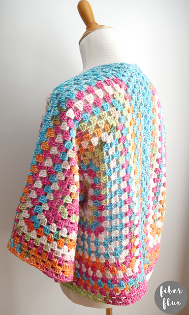The Art Class Cardi is a gorgeous and super easy sweater to stitch up for the cooler months ahead! This cardigan can be dressed up or dressed down and stitched up in fun variegated yarn like the one shown here, or in a more neutral palette too! 2 granny hexagons are cleverly seamed together to make a satisfying and easy as pie project!