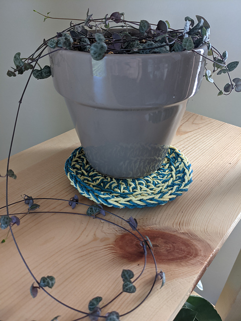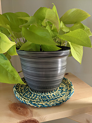 Using two strands of cotton yarn held together in your own color combo quickly create your own Eco Plant Coaster. There are three sizes available, small, medium and large. A great accessory for the plant loving person in your life!
