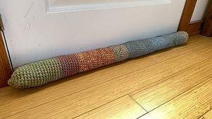 A simple idea to block drafts in your home. This is called a Crochet Draft Dodger or Draft Blocker. I used Caron Cakes to crochet this.