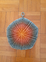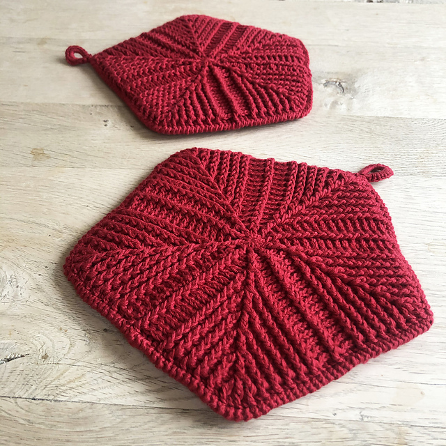 When made in red, these potholders spread the "hygge" around christmas. In other colours it is just a beautiful potholder. The pattern looks a bit like ice crystals.