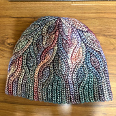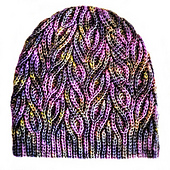 **The Ivy crochet hat** is made vertically, flat, in one piece. Repeating panels are connected as you go. The Ivy pattern is created using short rows and slip stitches that are smoothly integrated into the ribbing with an optional fold available.