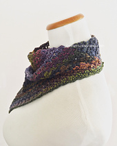 Just simple crochet stitches are used for this project and rows are crocheted straight across., plus a very simple seam. The construction of the neckwarmer gives it the nice diagonal row look.