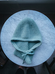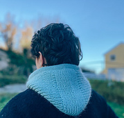 Flashback Hoodie is a warm and airy hoodie, worked in rib, with a long I-cord through the drawstring around the face. Just like a hood needs to be on a hoodie. On particularly cold and windy days, it can be pulled closed or placed around the neck and head like a scarf. The fit is wide, so it can also be worn with a beanie underneath. Flashback hoodie is worked as follows: First, you cast on stitches at the forehead for the hoodie’s top, whereafter you pick up stitches along the sides and work the hoodie to your desired length.