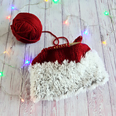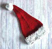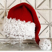 Classic Santa stocking hat knit with a faux fur brim, bulky weight wool yarn and a knit ball pompom. Free knitting pattern with sizes for the whole family.