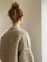 The intricate shoulder construction makes the sweater stand out with extra attention to detail. The sweater is worked from the top down without any need for additional finishing.