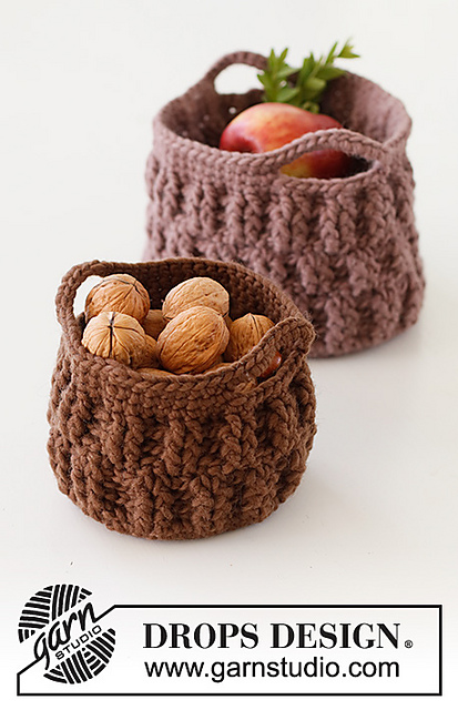 **Crocheted baskets in DROPS Snow. Piece is crocheted in basket pattern. Theme: Christmas.**